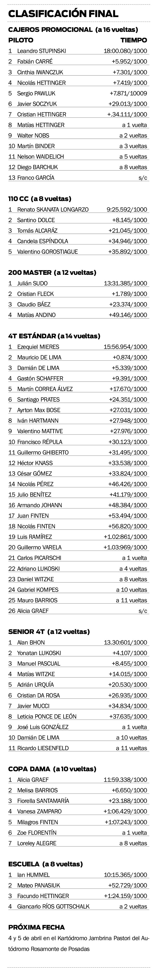 La próxima fecha se disputará en el Kartódromo Jambrina Pastori del Rosamonte de Posadas el 4 y 5 de abril.