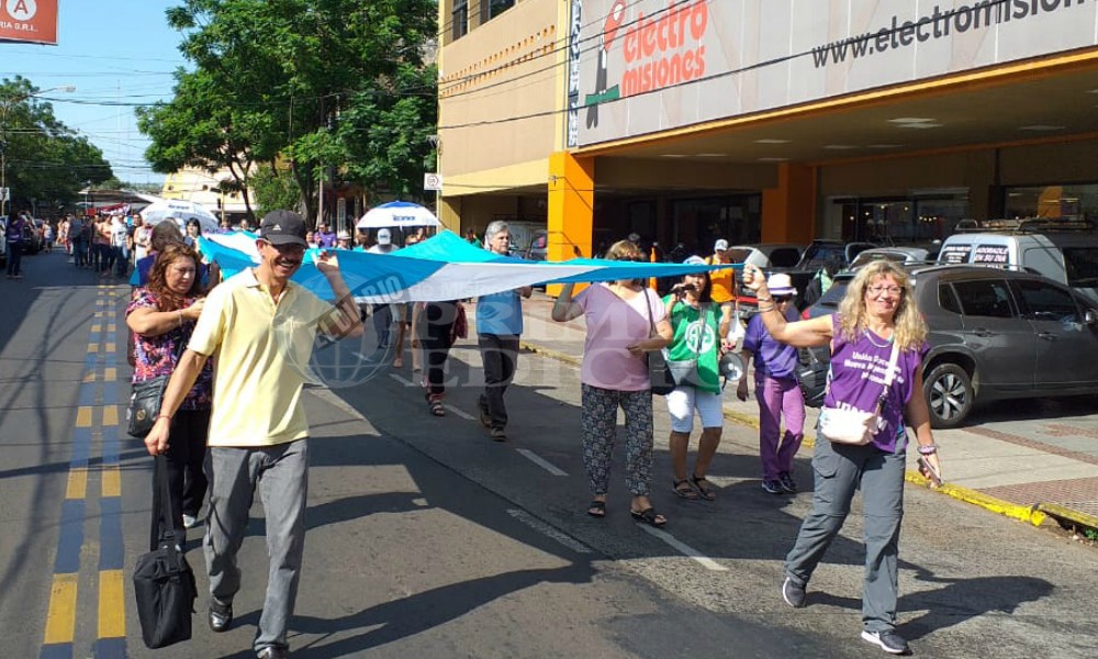 Docentes posadeños se sumaron a la movilización que se realizó sobre la avenida Junín hasta la plaza 9 de Julio en reclamo de una discusión salarial con la participación de todos los frentes. Rechazan la propuesta del 20% acordada ya con algunos gremios educativos.
