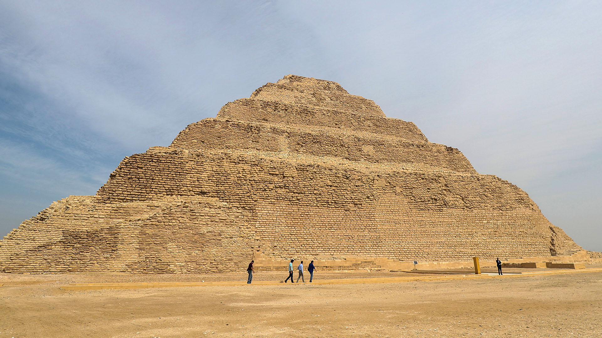 La pirámide escalonada de Zoser, la primera construcción de piedra a gran escala de la historia y el complejo funerario piramidal más grande, está ubicada en el sitio arqueológico de Saqqara, al oeste de El Cairo. El complejo de 60 metros de altura consta de seis partes superpuestas sobre una tumba funeraria de 28 metros de profundidad y siete metros de ancho.