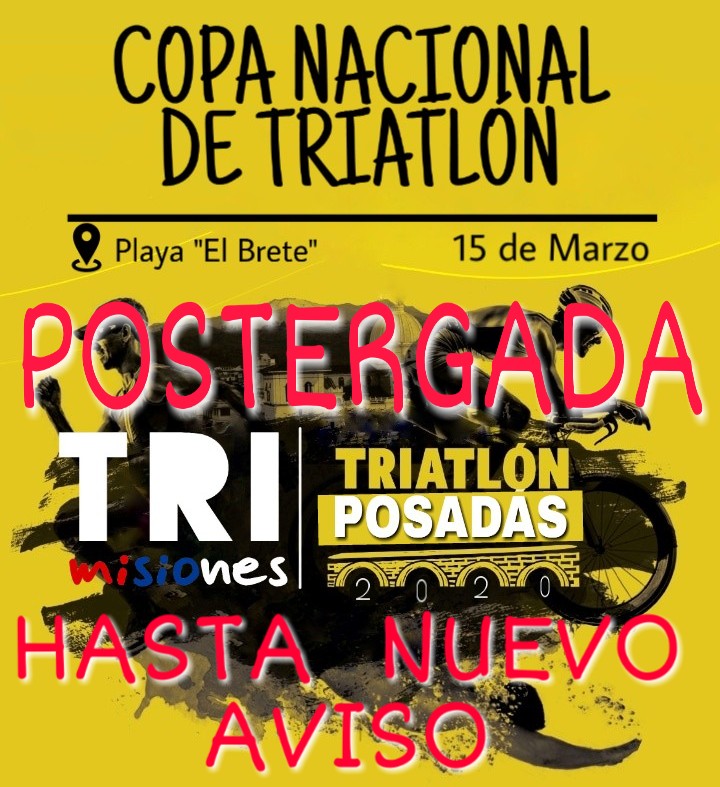 Este domingo 15 de marzo se iba a llevar a cabo en Posadas la Copa Nacional de Triatlón, pero en virtud de los acontecimientos que son de público conocimiento referidos a la declarada pandemia del coronavirus, al brote del dengue en nuestra zona y principalmente como consecuencia de las medidas adoptadas por el gobierno Provincial, la Asociación Trimisiones decidió posponer dicho evento deportivo.