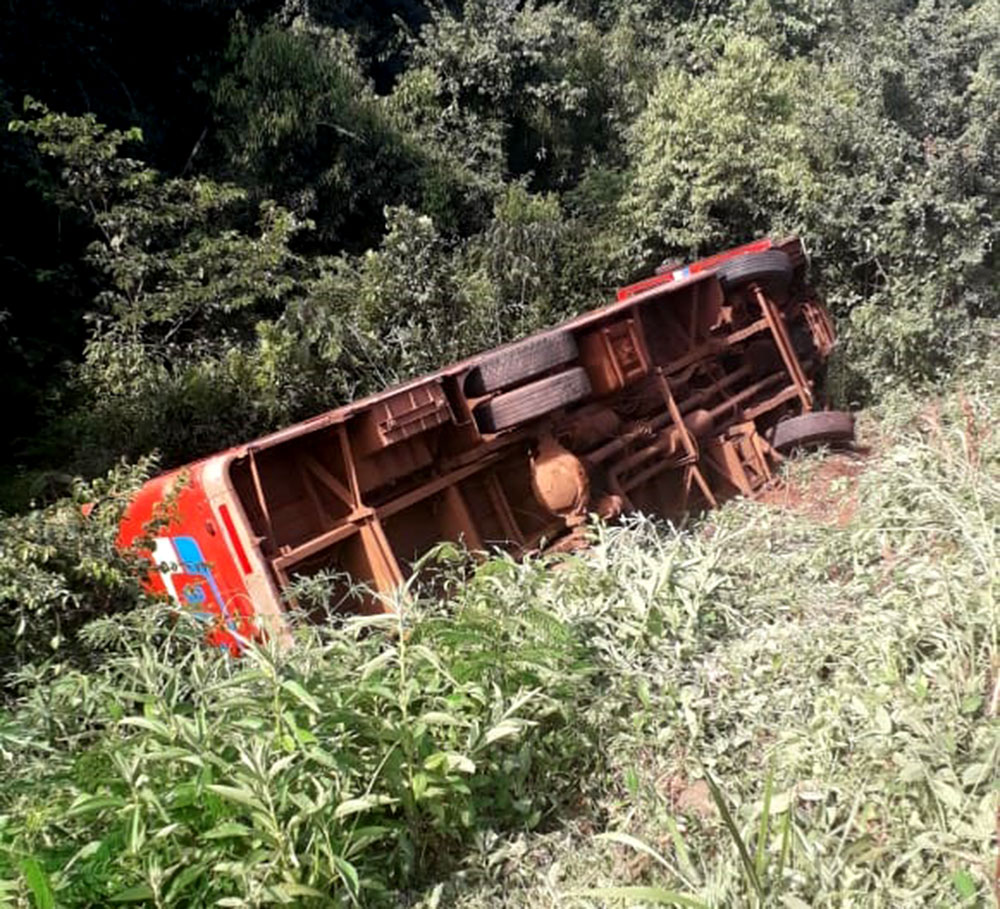 El siniestro vial se registró esta tarde en la ruta provincial 103, en la altura de la cantera de la localidad de San Martín, cuando por razones que se tratan de establecer un ómnibus de pasajeros despistó sobre la banquina.