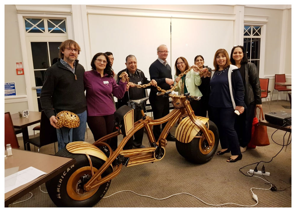 Sostuvo que antes de la “bici”, había hecho muchos trabajos difíciles, como escaleras. Uno de sus aprendizajes fue una canoa canadiense que hice en Argentina allá por 1989. “Fue un trabajo muy costoso, no económicamente, sino que hay que pensar mucho y trabajar muy bien la madera para que sea liviana y fuerte. En aquel tiempo fue todo un logro. A ese trabajo lo comparo con la bicicleta.