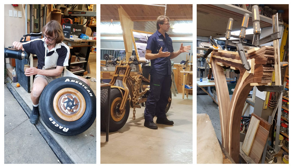 José y Verónica “eran muy trabajadores y uno aprende de sus mayores, es algo de lo que les estoy muy agradecido. Me gusta mucho trabajar con la madera pero también me gusta mucho la mecánica y el arte. Siempre estoy mirando cosas artísticas, no importa que no sean de madera, pueden ser metal, arte en general, porque siempre algo te deja de enseñanza. Lo que me gusta es mesclar la mecánica con la madera. La bicicleta fue el resultado de esa mezcla”.