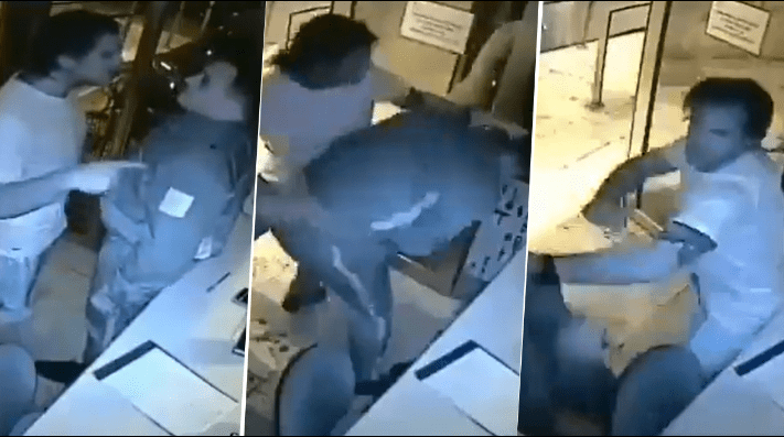 Este hombre, afirmando que el guardia lo estaba amenazando por pedirle simplemente que haga lo que la ley manda, comenzó a acercarse cada vez más y más.