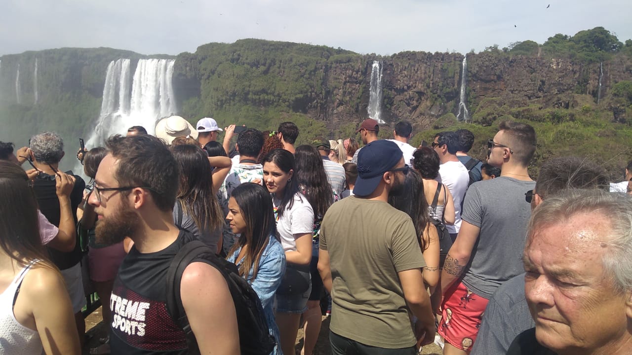 A pesar de la pandemia, largas filas de turistas en las Cataratas en Foz