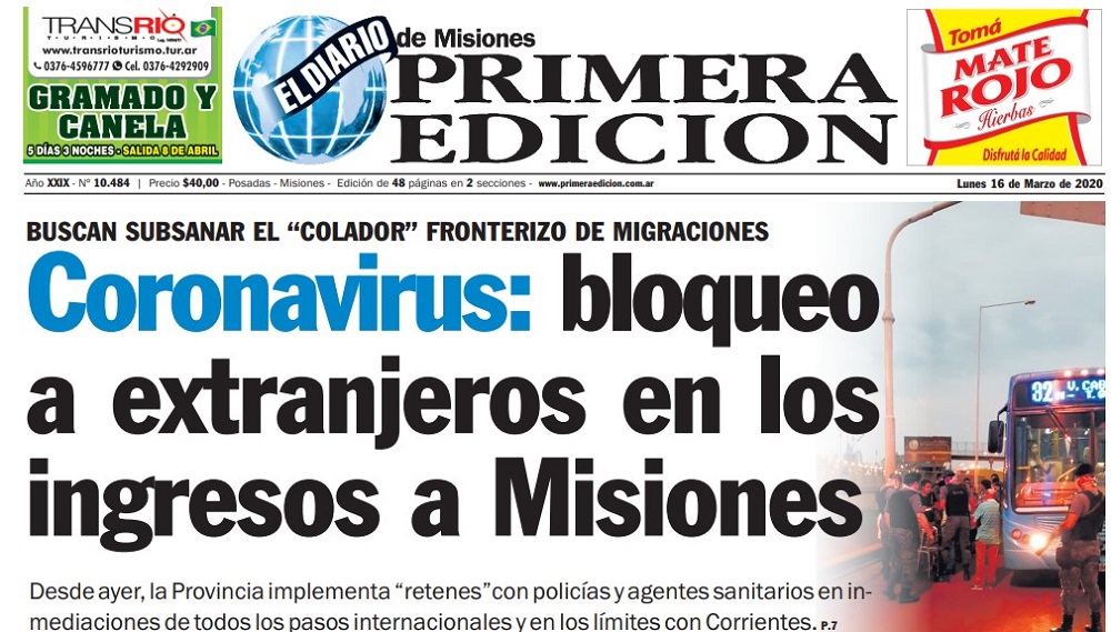 Paralelamente, ese mismo 15 de marzo de 2020 (y sin casos registrados todavía), Misiones activó un “retén” a extranjeros no residentes en todos los pasos fronterizos de la provincia, para contrarrestar la falta de capacidad de la Dirección Nacional de Migraciones para cumplir con las medidas de emergencia establecidas por el Gobierno central, convirtiendo la frontera misionera en un “colador“.