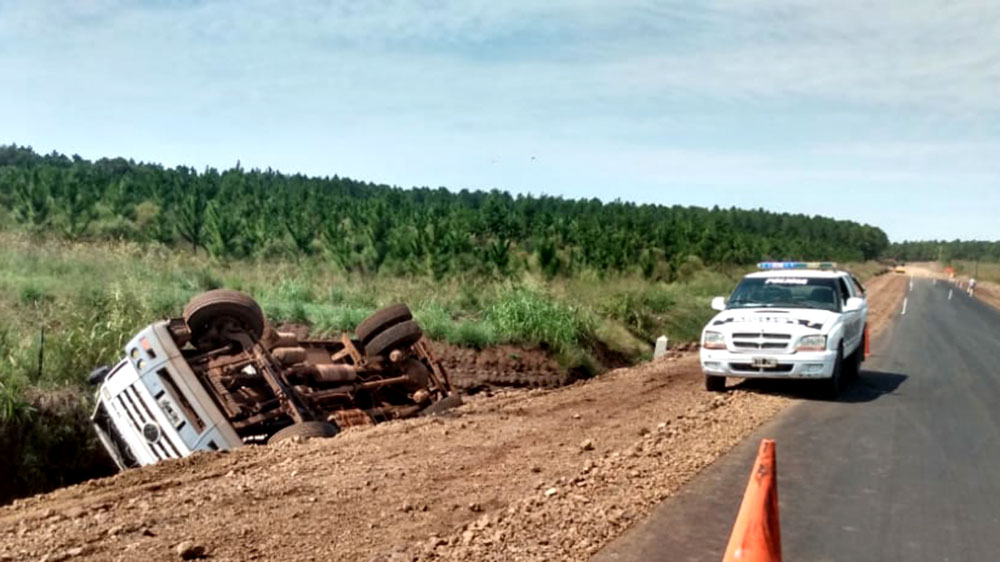 Esta mañana, personal de la Comisaría local tomó conocimiento que en el km 4 de la mencionada arteria, acceso a Profundidad, un camión Volkswagen tipo regador de agua, se encontraba al costado de la calzada en posición invertida.