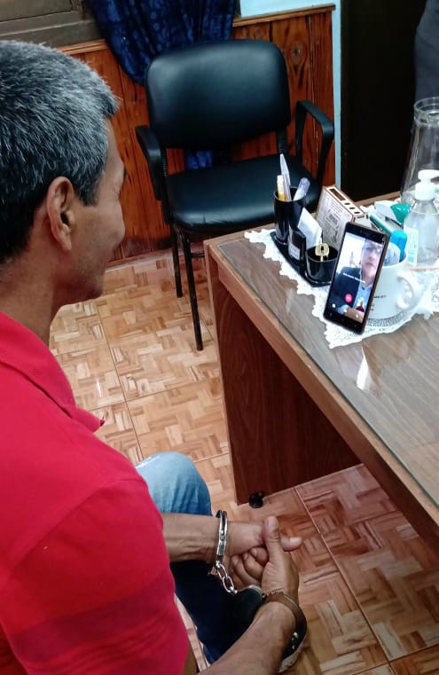 La modalidad es la siguiente: se coloca al interno frente a un teléfono con llamada de video activa y del otro lado de la línea se encuentra el presidente del cuerpo judicial, el magistrado Atilio León, con las secretarias del Tribunal, quienes toman nota de las requisitorias del juez y las demandas del reo.