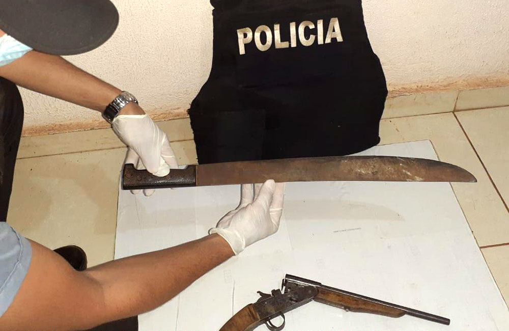 El sujeto fue detenido en la vía pública y en su poder tenía un machete, sin embargo, los efectivos realizaron un rastrillaje y hallaron entre la maleza un arma similar a una escopeta recortada calibre 38, que según lo expuesto por la denunciante, el hombre habría abandonado minutos antes.