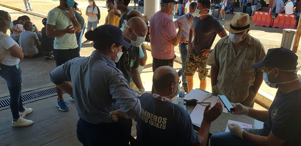 A todas las personas que vienen desde otro lugar “les hacemos el primer control sanitario al cruzar la frontera y allí van a un lugar que está especialmente acondicionado para recibirlos sin que entren a Puerto Iguazú y desde allí son conducidos al aeropuerto internacional de donde salen dos vuelos, uno a la mañana y uno a la tarde, que los lleva a Buenos Aires; así como a quienes tienen su domicilio en provincias como Chaco, Corrientes, Salta o Entre Ríos se los lleva en un colectivo que sale directamente desde el lugar”, manifestó el Gobernador.