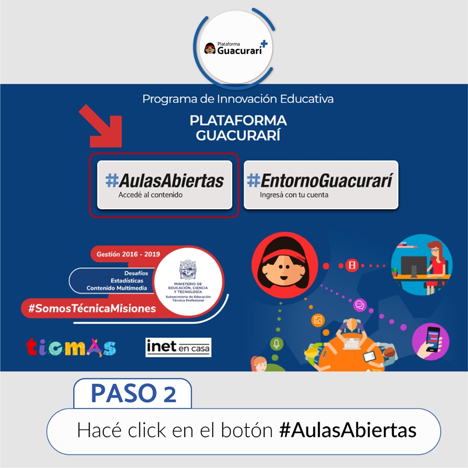 Ya no hacen falta usuarios ni contraseñas. Para seguir estudiando de manera virtual en Misiones, la Plataforma Guacurarí liberó sus contenidos para todos los niveles educativos a cargo del Ministerio de Educación, Ciencia y Tecnología. Ahora se verá en la página un botón llamado “Aulas Abiertas”, se podrá elegir el nivel educativo, seleccionar la materia y visualizar el contenido con el botón “Ver contenido”. Se podrá navegar con los botones “Atrás” y “Cambiar Asignatura”, ubicados en la parte superior de la página.
