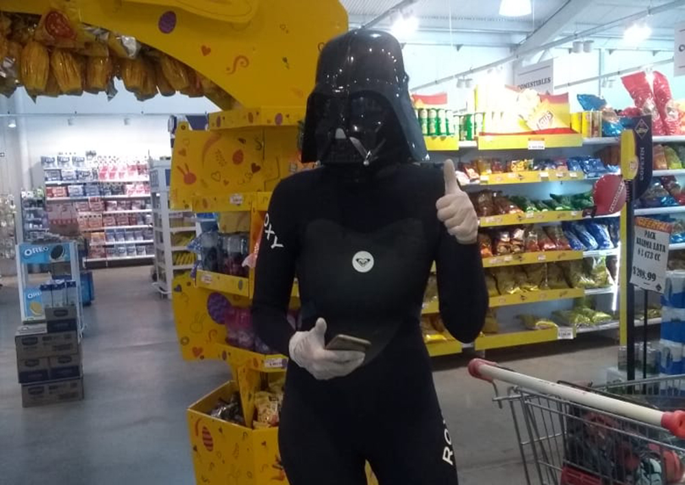 El hecho ocurrió en la localidad santafesina de Roldán. Allí la mujer fue a comprar a un supermercado local con una máscara del personaje de Star Wars, y un traje de neoprene negro, como los que se utilizan para realizar surf o buceo.