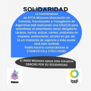 También para ayudar a un sector de la población muy vulnerable, desde la coordinadora de la Asociación de Travestis, Transexuales y Transgénero de Argentina ( ATTTA) Misiones se impulsa una campaña para juntar comida.