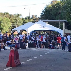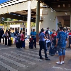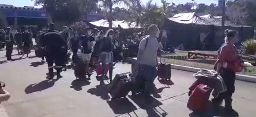 La frontera entre Argentina y Brasil sigue abierta y las personas que ingresan caminan hasta superar el bloqueo municipal, a la espera de un colectivo puesto por la provincia o un taxi que los lleve hasta el aeropuerto en caso de haber conseguido un ticket aéreo.