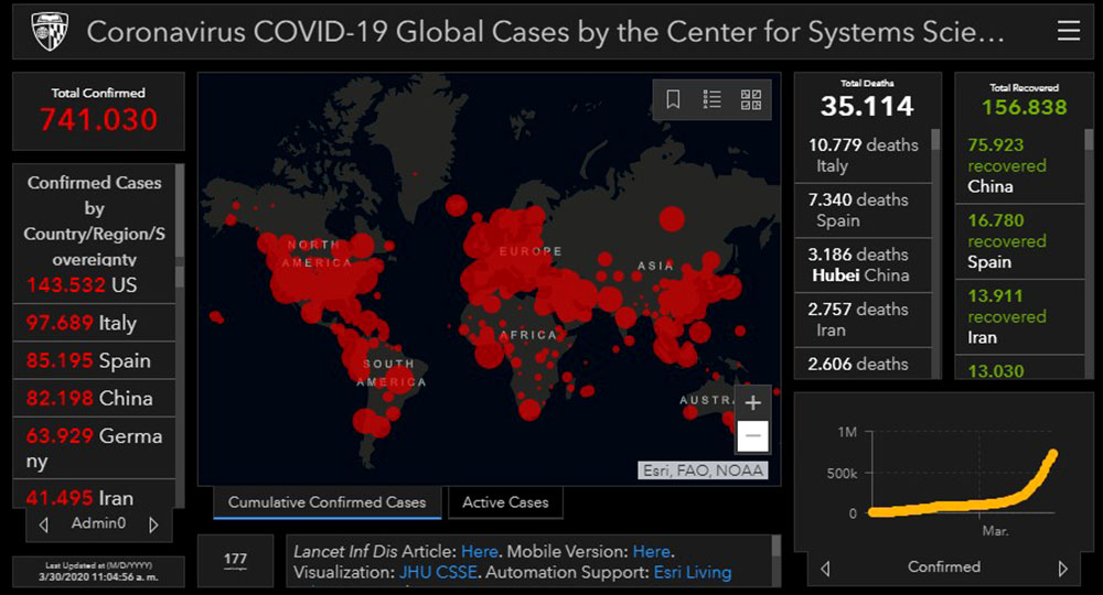 En el mundo, este lunes por la mañana, había 741.030 personas infectadas, con 156.838 recuperados, provocando 35.114 fallecimientos en todo el mundo. Cifra que irá aumentando con el correr de las horas.
