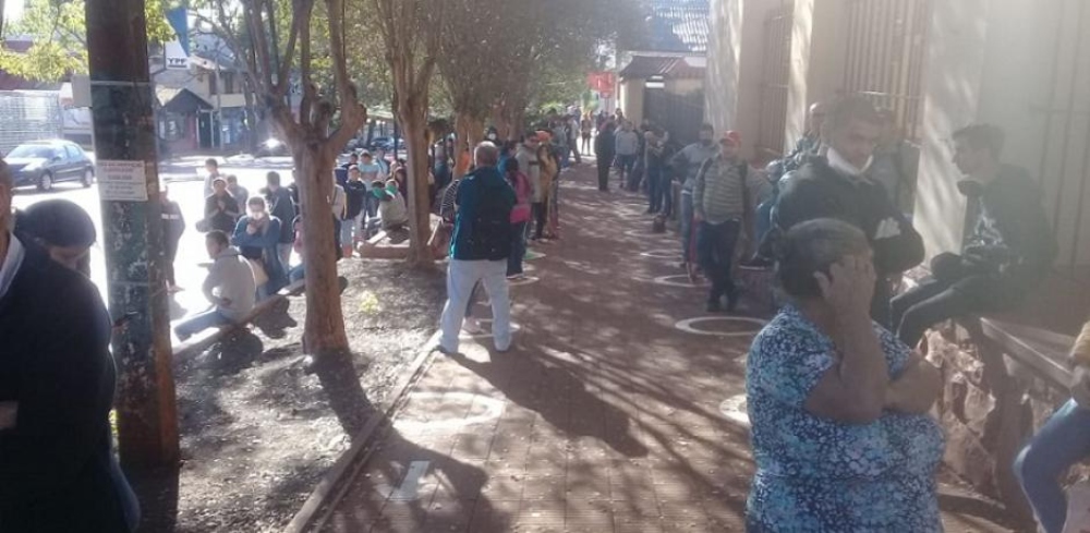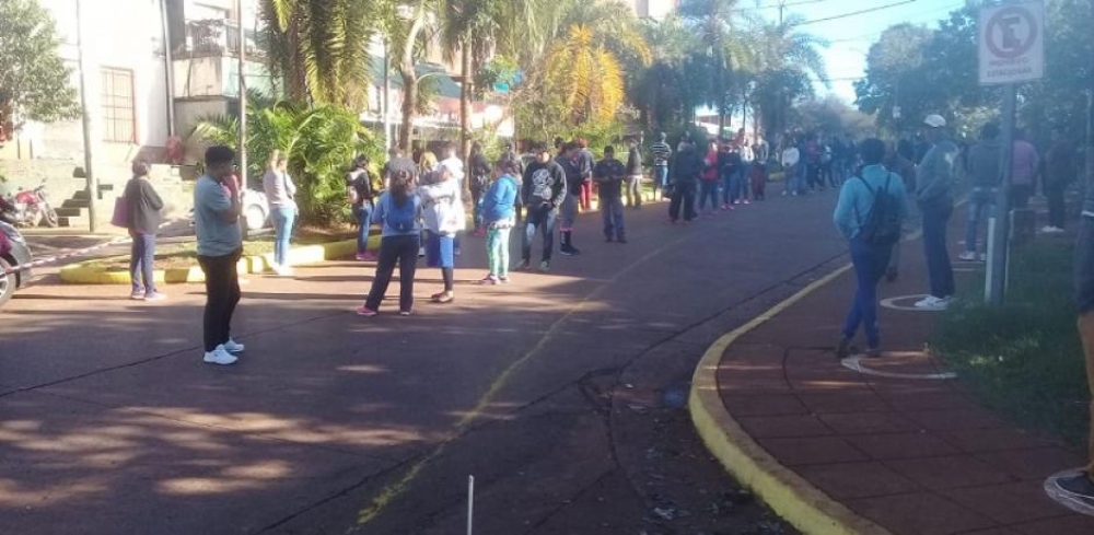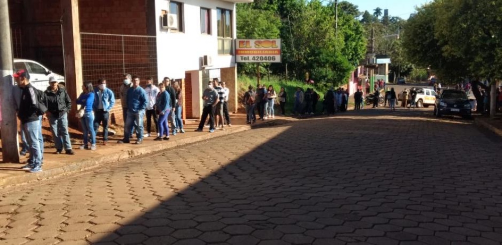 En Eldorado, desde muy temprano, también se ven largas filas para acceder a las entidades bancarias. Tanto para utilizar los cajeros automáticos, como para ingresar a las entidades y cobrar por ventanillas aquellos que no poseen la tarjeta de débito.