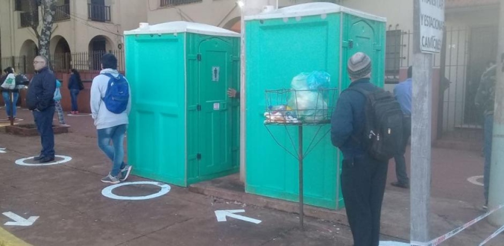 En el lugar hay personal de salud pública e inspectores de tránsito trabajando, haciendo las recomendaciones necesarias y repartiendo barbijos, ordenando y organizado a las personas que están esperando, también se dispuso de la instalación de baños químicos para que los puedan utilizar.