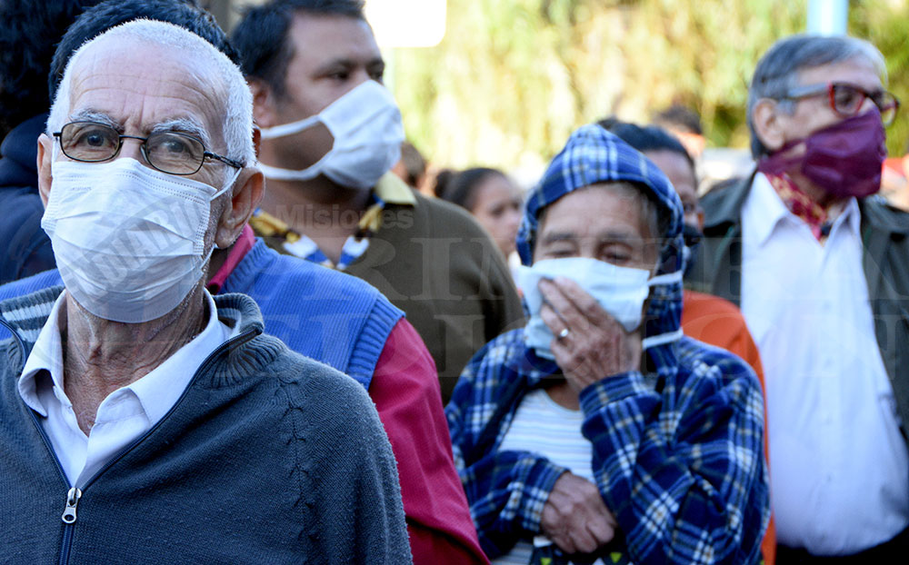 Algunos jubilados y pensionados aguardaban desde temprano, en filas que respetaban el distanciamientos social establecido en el marco de la pandemia de coronavirus, la apertura de los bancos prevista hoy para el pago por ventanilla a quienes no hayan cobrado en marzo sus haberes y cuyos DNI finalicen en 4 ó 5 y no tengan tarjeta de débito, de acuerdo con lo pautado por el Banco Central.