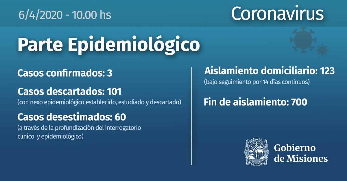 En cuanto a los tres casos positivos de la provincia, el ministro de Salud Pública, Oscar Alarcón, precisó que “los tres se encuentran muy estables, tanto el de Posadas como los dos de Iguazú. Están cumpliendo con el tratamiento pertinente para el coronavirus”.