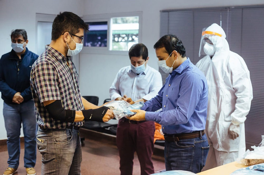 El Gobierno provincial mantiene un monitoreo permanente de los insumos de seguridad personal de todos los trabajadores, por ello esta mañana se entregaron elementos de bioseguridad personal compuestos por gafas, barbijos, mamelucos, guantes y botas para los trabajadores del 107.
