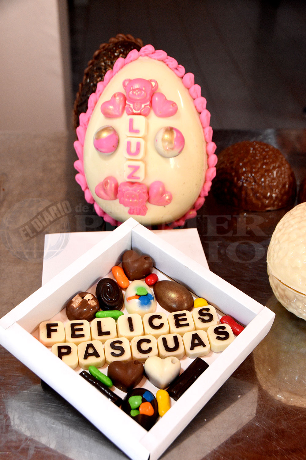 Súper huevos gigantes, huevos cuchara (con relleno) o los tradicionales con envoltorios de colores se fabrican bajo las manos Rebeca Laudín y se venden a través de las gestiones de Cristian Segura.