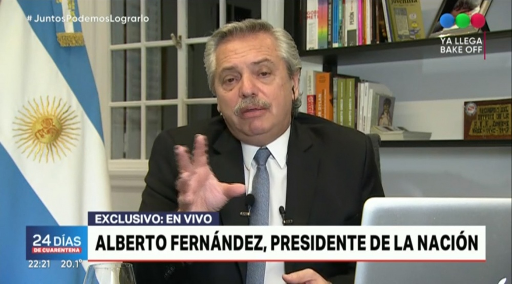 El jefe de Estado volvió a explicar que el posible pico de contagiados puede ser “alrededor del 15 de mayo” y eso sería el momento en que según los médicos “el virus haya alcanzado su mayor expansión en la sociedad”. Sin embargo, aclaró que algunos epidemiólogos dicen que “el resultado de la cuarentena está aplanando mucho la curva y entonces ese pico quizás no sea un pico, y quizás sea un constante devenir de contagios en un ritmo más lento”. Y agregó: “Tal vez la enfermedad dure más tiempo pero evitemos ese pico”.