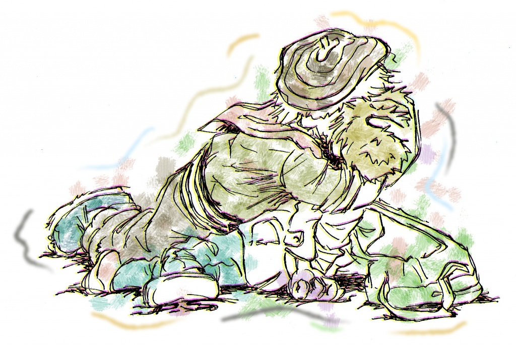 El compadre Valdez ya le había lavado la herida con agua y le había aplicado un torniquete en la parte del brazo, previamente cortó en cruz la lesión, la quemó con la daga de su cuchillo que lo calentó en el fogón y chupó allí varias veces, escupiendo la sangre. Hacía todo esto, persignándose cada tanto y musitando oraciones en guaraní.