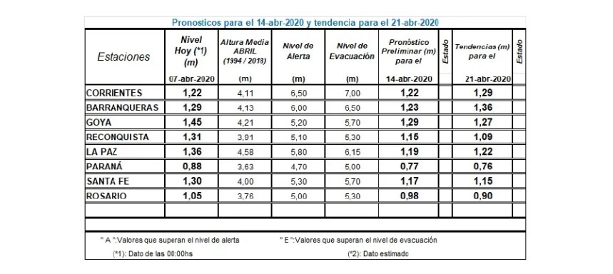 • bajante - Según indicó el Instituto Nacional del Agua (INA), el nivel del río Paraná se ubica por debajo de los 2,00 metros desde el 27 de marzo. Es el promedio mensual de marzo más bajo de los últimos 50 años.