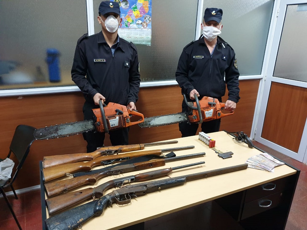 El procedimiento se desarrolló en horas de la tarde y luego de la detención del dueño de casa, se incautaron dos motosierras, la suma de 14 mil pesos, un vehículo Fiat Fiorino, una motocicleta Yamaha YBR de 125 cc, dos escopetas de distintos calibres, tres rifles calibre 22, un revólver calibre 38, municiones y cargadores varios.