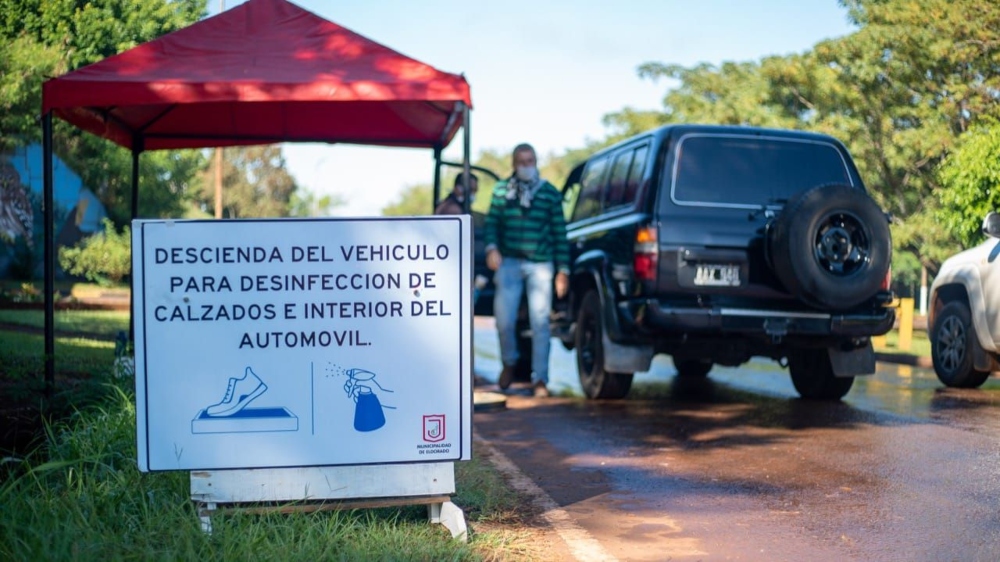 A través de este sistema todos los vehículos que ingresan a la ciudad de Eldorado, sean camiones u otros de menor porte, son desinfectados.