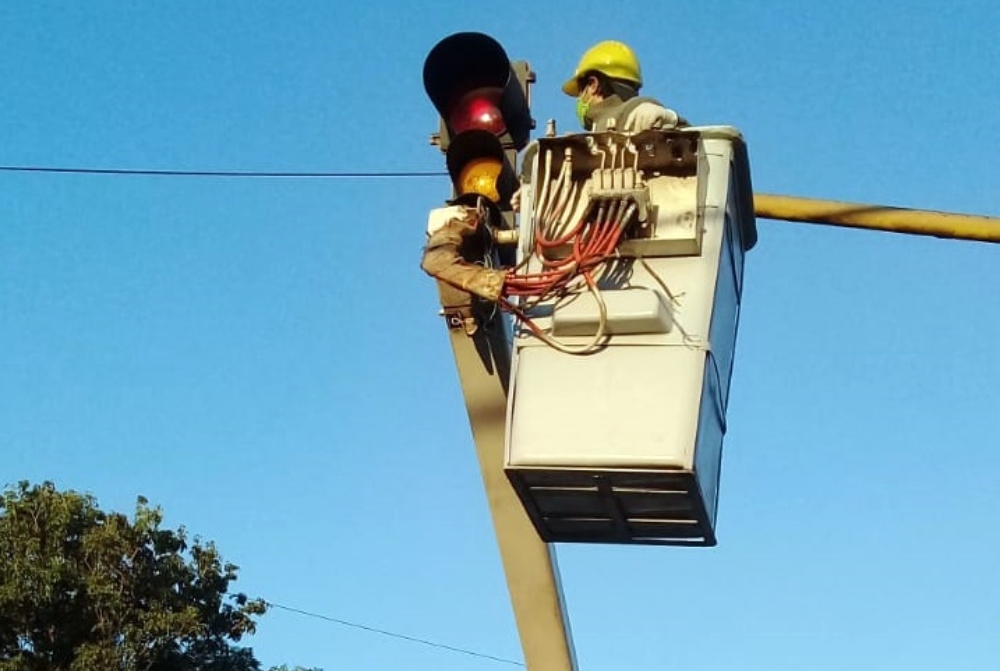 Los trabajos fueron realizados en la intersección de las avenidas Francisco de Haro e Ituzaingó, en donde se completaron las lámparas led faltantes y se eliminaron las ramas que obstruían la visión.