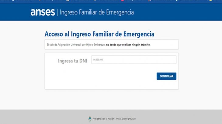 Ingrese al portal Oficial de Anses.gob.ar. Desde allí, deben ingresar a la opción “Ingreso Familiar de Emergencia”.