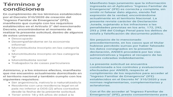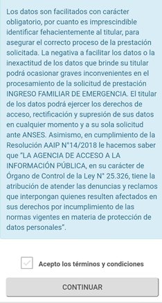 Luego del ingreso con Clave Anses, de inmediato nos pide aceptar los Términos y Condiciones.