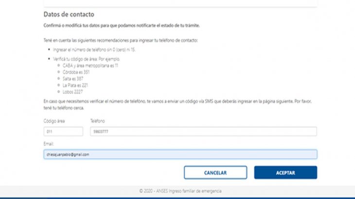 Luego de aceptar el ingreso del celular y el correo electrónico, nos van a pedir la confirmación del mismo mediante la entrega de un SMS y correo mail.