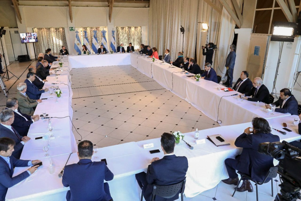 Los términos de la oferta del canje de deuda pública externa fueron presentados por el presidente Alberto Fernández y el ministro de Economía, Martín Guzmán, ante los gobernadores reunidos en la quinta de Olivos (en forma presencial o por videoconferencia).
