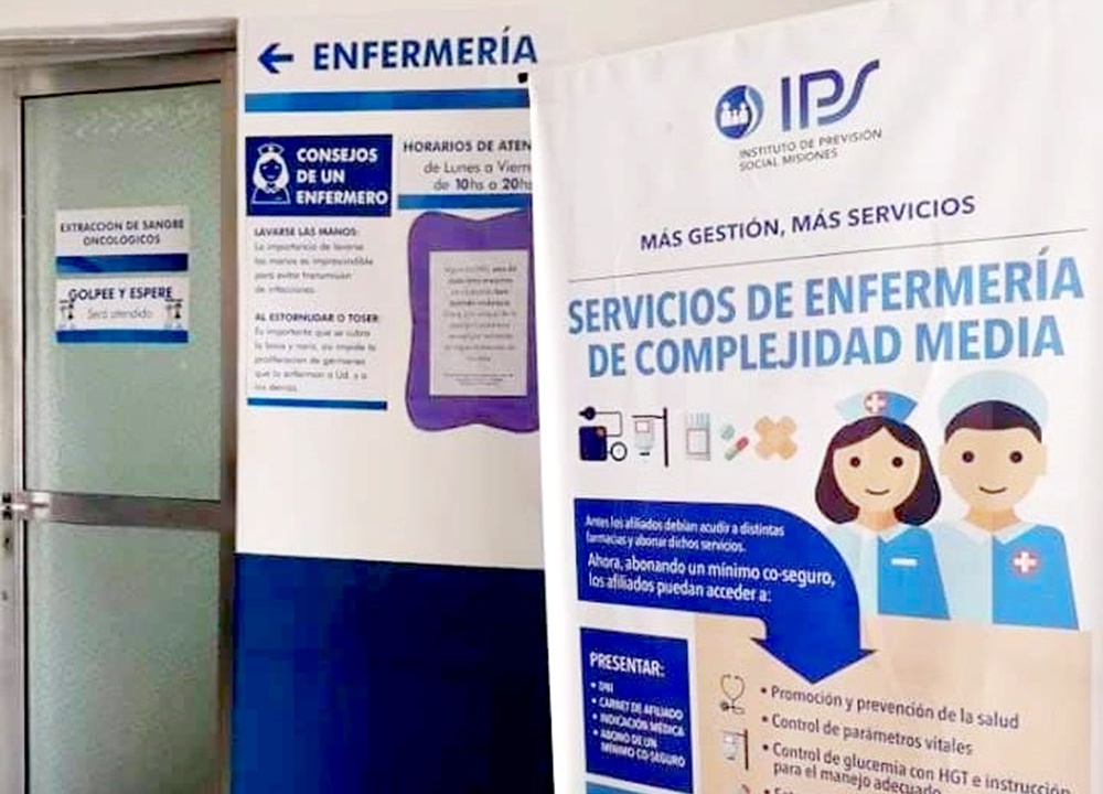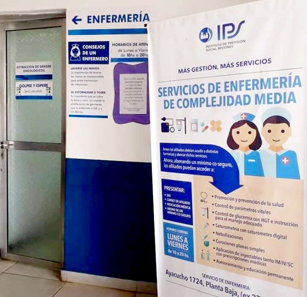 En la Enfermería del IPS se realizan tareas de promoción y prevención de la salud, control de parámetros vitales, inspección de glucosa e instrucciones para el manejo adecuado, curación plana simple, nebulizaciones, aplicación de inyectables y asesoramiento para todos los afiliados de la institución.