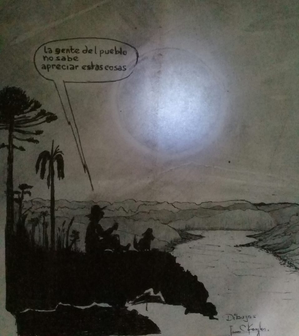 “Pero nunca me dediqué a hacer esas cosas como para publicar, nunca nadie me llamó para eso. Pero siempre hacía dibujos así, inclusive concurría a los asados y hacía caricaturas, personajes con su vino, comiendo asado. como Para entretenerse nomas”.