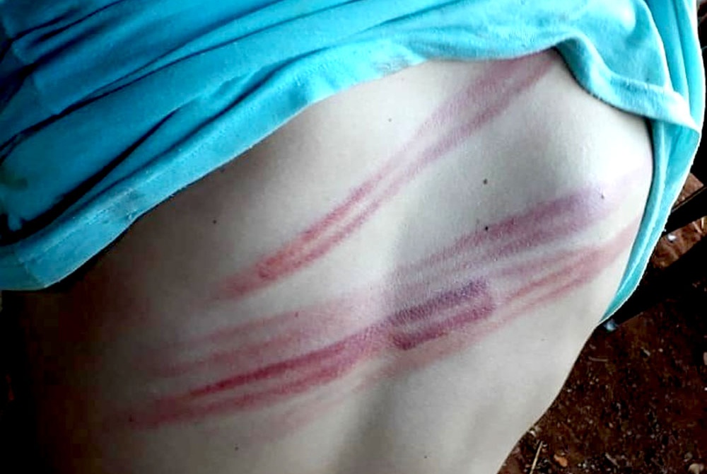 Camino a la sede policial y dentro de ella, habría recibido latigazos en la espalda y habría sido obligado a más flexiones de brazos para luego secuestrarle la motocicleta y obligarlo a regresar caminando a su hogar a trece kilómetros de distancia.