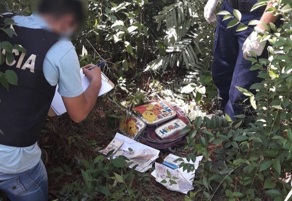 Continuando con la investigación, en una zona de espesa vegetación, se encontró una mochila que en su interior guardaba la suma de 22 mil pesos en efectivo y tarjetas de crédito.