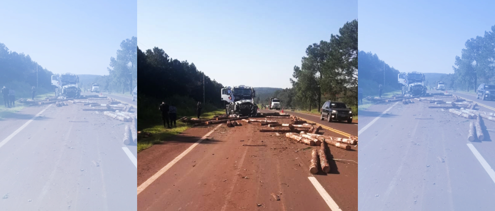 Fuentes policiales indicaron que el siniestro se originó alrededor de las 14.30 cuando un camión cisterna Ford transitaba en sentido Norte-Sur y embistió a otro camión, un Mercedes Benz que viajaba en la misma dirección, y que por el impacto, se desprendió parte de las cargas de madera que transportaba.