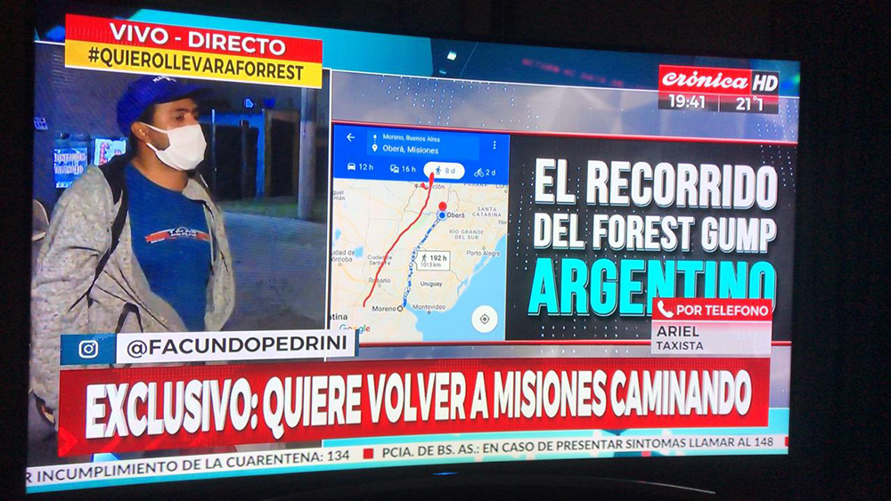 Ante semejante situación, de angustia y desesperación, el hombre decidió que volvería caminando a Misiones, si era necesario. Así, Crónica TV lo apodó el “Forest Gump” argentino.