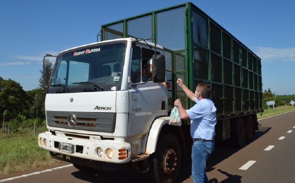 Pero, además de eso, en Leandro N. Alem –una de las localidades de la provincia con mayor población de trabajadores del volante- decidieron activar el lunes una asistencia a modo de homenaje, consistente en entregarles un barbijo, dos choripanes, un agua mineral y unas indicaciones de seguridad a todos los camioneros que pasaban por los puestos de control instalados en el acceso a la ciudad.
