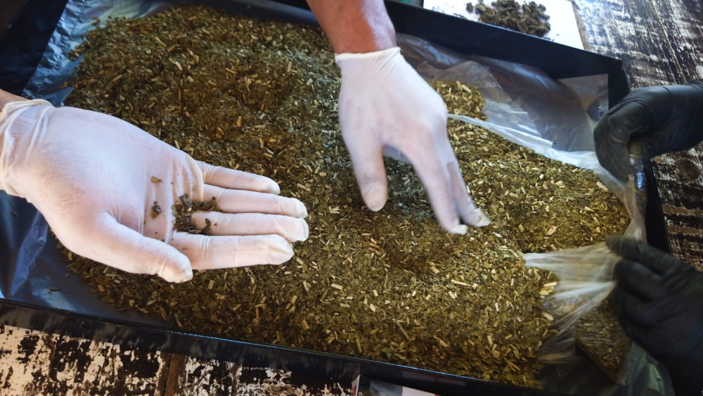 El inusual hecho ocurrió este domingo en horas del mediodía en la Unidad Penal VI de Miguel Lanús en Posadas, cuando efectivos del Servicio Penitenciario Provincial (SPP) al realizar la requisa correspondiente en la mercadería que traía un hombre para un interno. Al abrir un paquete de yerba, el mismo despedía un aroma particular, por lo que al hacer el traspaso de la yerba a una bolsa, pudieron observar que la misma presentaba características inusuales.