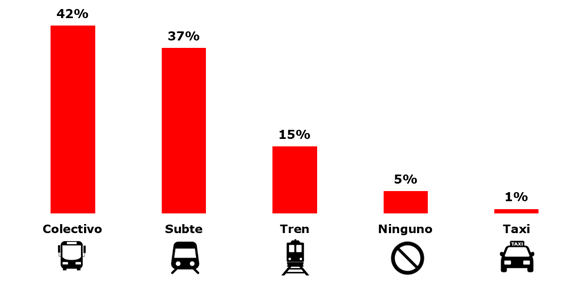 Para muchos, el colectivo (42%) es el transporte público más inseguro a la hora de pensar en un contagio, luego el subte (37%), el tren (15%), el taxi (1%), y ninguno de las anteriores para el 5%.