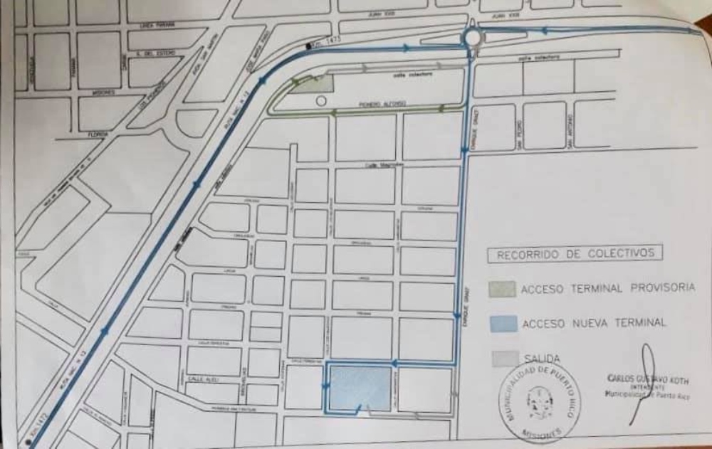 El proyecto del Ejecutivo aprobado por los ediles la semana pasada, estableció que todos los ómnibus de media y larga distancia, procedentes del Sur o del Norte, ingresarán a la terminal provisoria, ubicada sobre la calle Virreinato del Río de la Plata, por la rotonda de la ruta Nacional 12 y Pionero Graef.