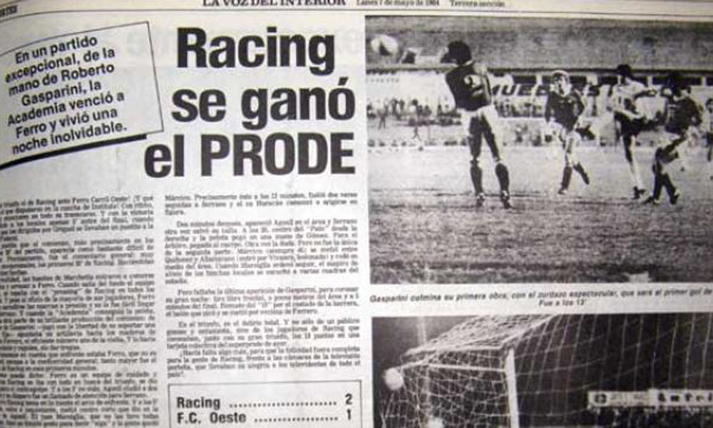 Se cumplen este martes 41 años de una de las historias más pintorescas de los tiempos del concurso de Pronósticos Deportivos (PRODE), cuando los jugadores de Racing de Córdoba dependieron de sí mismos para alcanzar el total de 13 puntos y en efecto lo consiguieron, pero la recompensa estuvo lejos de lo que esperaban.