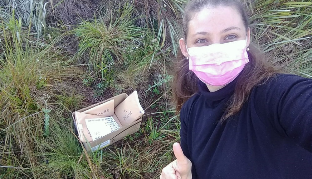 Laura Iszcuk es maestra rural de Santa Ana y, como sus alumnos no tienen conectividad para poner en práctica las clases virtuales, decidió fotocopiar las tareas los siete grados a su cargo y llevárselas hasta los caminos cercanos a sus casas para evitar el contacto físico.
