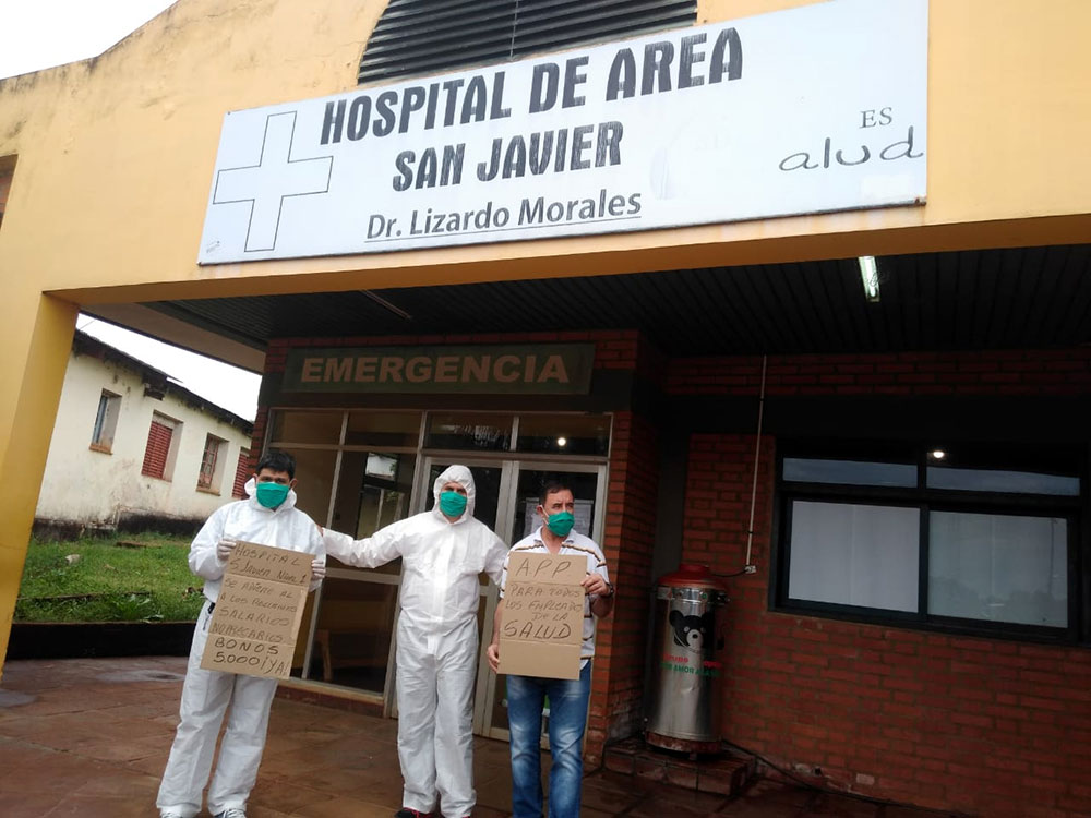 Cuatro fueron los reclamos que se repitieron ayer entre los trabajadores de la Salud Pública de la provincia: que se pague el bono nacional de 5.000 pesos, elementos de bioseguridad en cantidad y calidad para todos, un sueldo digno y la incorporación de todos a planta permanente.