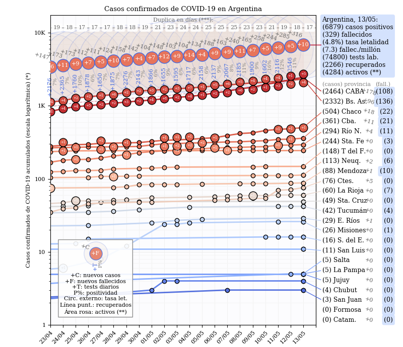 Del total de enfermos confirmados este miércoles, 178 son de la Ciudad de Buenos Aires, 96 de la provincia de Buenos Aires, 11 de Córdoba, 18 de Chaco, 5 de Corrientes, 1 de Entre Ríos, 1 de Mendoza, 2 de Neuquén, y 4 de Río Negro.