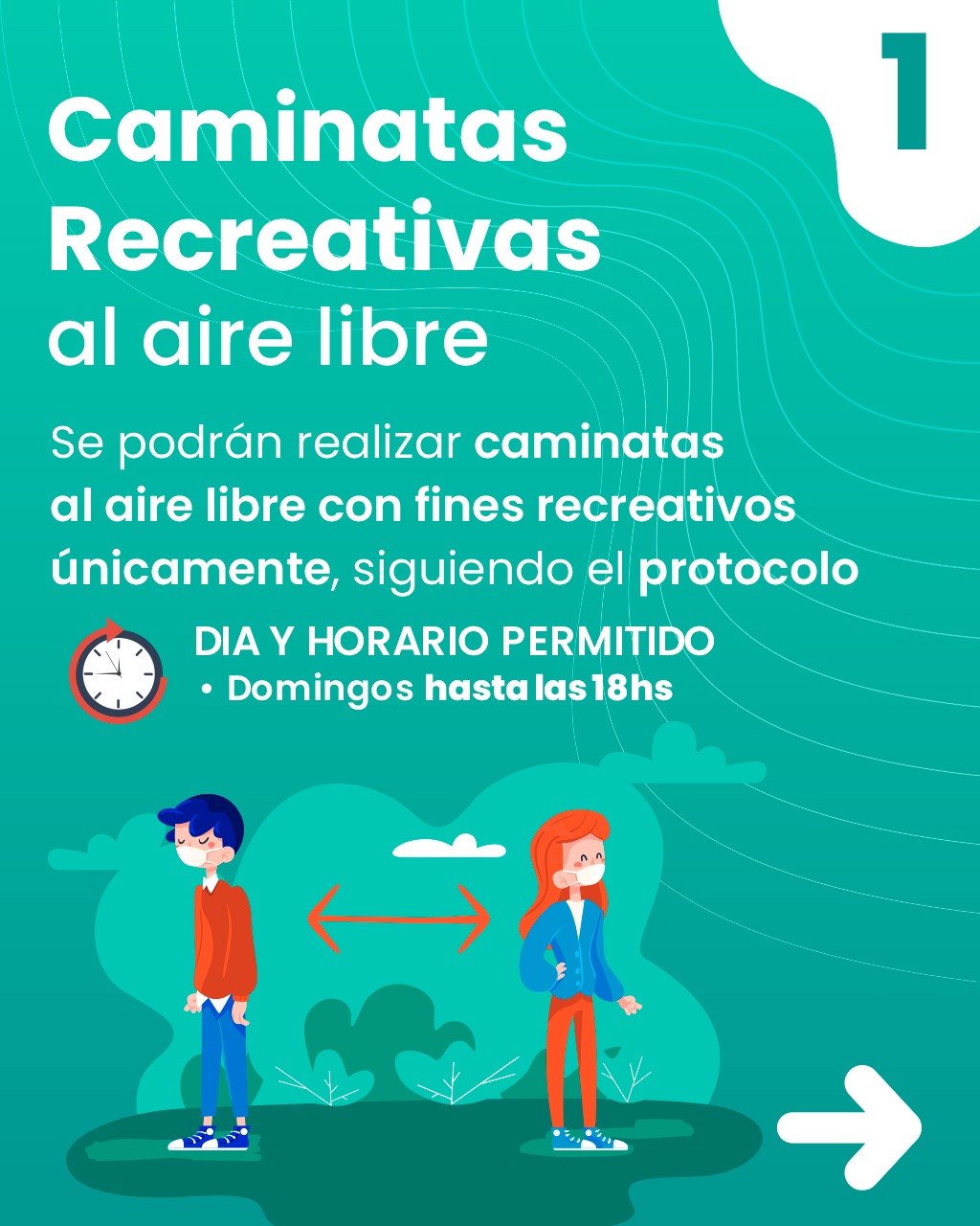 1) Quedan autorizadas ÚNICAMENTE las caminatas recreativas, no pudiendo realizarse ninguna otra actividad similar y/o deportiva, y/o recreativa.